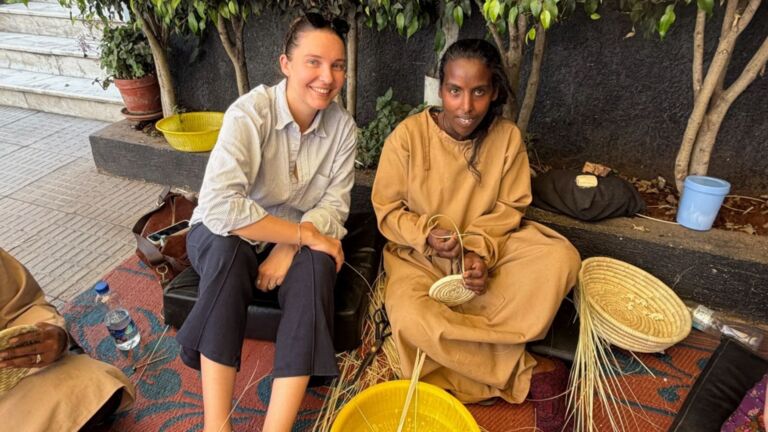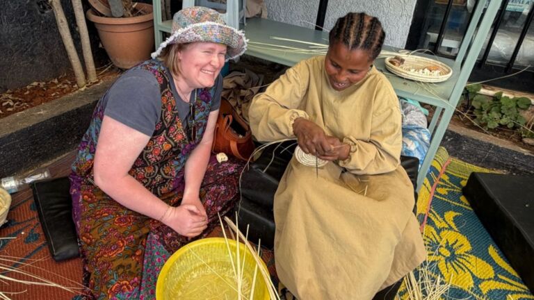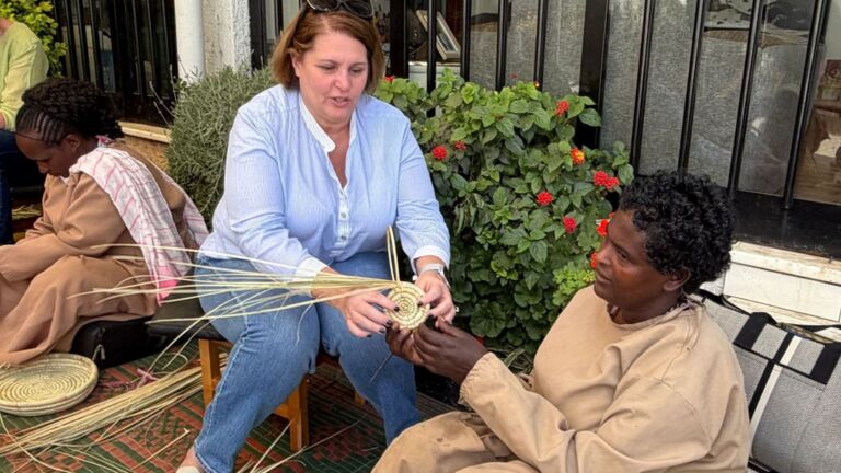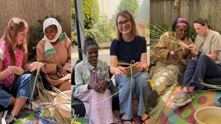 This week, we welcomed a group of visitors from the American Embassy who joined our weavers for a basket-weaving clinic. The ladies lovingly taught beginner weaving skills, and everyone went home with a little woven project of their own. These women truly love sharing their talents—and the joy was felt all around!